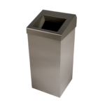 Brushed Stainless Steel 50 ltr Wastebin with Chute Lid. This elegant high quality brushed stainless steel bin is ideal for high volume general waste in areas such as offices and commercial premises. It may be floor standing for greater security can be wall mounted and makes for a cleaner washroom environment. It comes with a chute style lid
