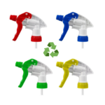 A recycled 750ml spray bottle with colour coded spray nozzle.This bottle is 100% recycled and 100% recyclable r-HDPE and is made in the UK out of plastic bottles.