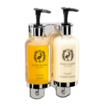 A double wall mountable holder for a two 250ml bottles of Duck Island handwash or hand cream. This lockable bracket keeps the bottles safe.