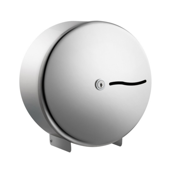 The dispenser is key lockable and is hinged to make it easy for the renewing of the toilet roll. It fits the mini jumbo roll up to a diameter of 250mm and has a sight indicator to monitor paper level to ensure it is kept full. The mini jumbo dispenser is manufactured in a polished stainless steel finish