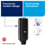 The Tork Skincare Dispenser in Elevation Design fits any location and can be used with a wide range of Tork soaps, sanitisers and lotions in sealed bottles. It is certified easy to use, is easy to refill in less than 10 seconds (based on internal panel test soap refilling time) and provides good hand hygiene for all users. Elevation dispensers have a functional and modern design that makes a lasting impression on your guests. Carbon neutral – produced with certified renewable electricity and compensated with climate projects.