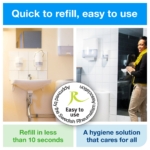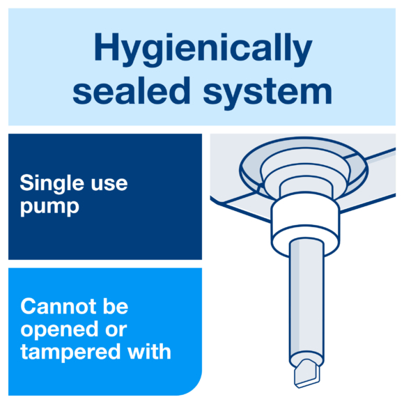 - Sealed refill bottle with a disposable pump to minimise the risk of cross-contamination – bacteria are not transferred
