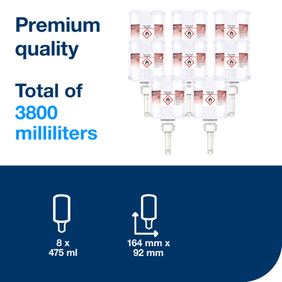 Tork Toilet Seat Cleaner provides extra reassurance to the visitors. Result in a more hygienic toilet seat with one dose of Toilet Seat cleaner on a piece of toilet paper. Suitable for Tork Mini Liquid Soap Dispensers, which are easy to use and provide good hand hygiene to all users.