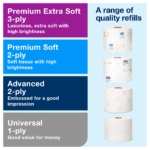 Make the most of smaller spaces in medium to high-traffic washrooms with our compact Tork Twin Mid-size Toilet Roll Dispenser. Bulk toilet paper won’t run out due to the dispenser’s high capacity – it holds up to six times more paper than two conventional toilet rolls. There’s no waste on the floor, either, as empty cores remain inside the dispenser. Impress guests with this modern and functional Elevation Design. It features an automatic roll shift, so they can access new rolls with ease.